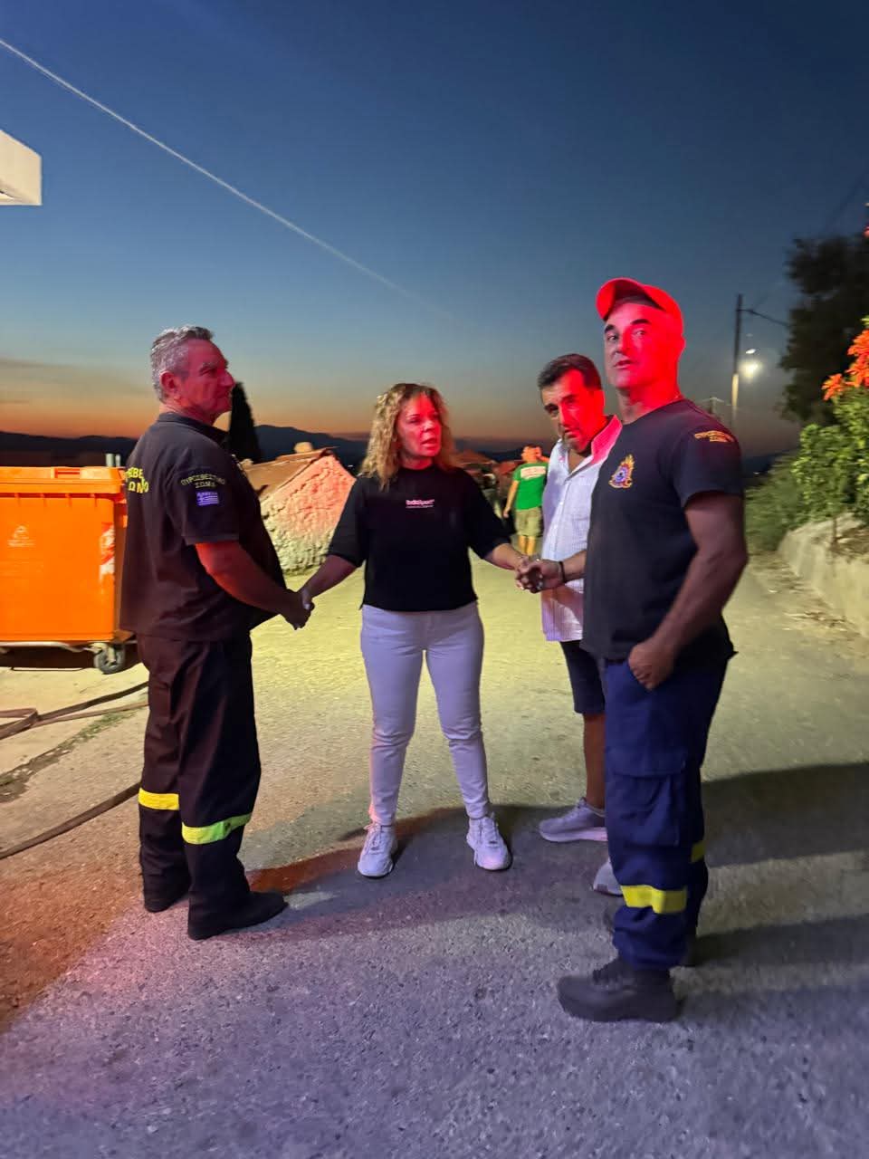 «Μέσα στις στάχτες είδα και το μεγαλείο των ανθρώπων του τόπου μας. Γείτονες που γίνονται ασπίδα, εθελοντές που τρέχουν να σώσουν, πυροσβέστες που παλεύουν ασταμάτητα με κίνδυνο της ζωής τους. Οι όμοροι δήμοι στο πλευρό των συμπατριωτών μας. Ενημερώθηκα από τον Διοικητή της Πυροσβεστικής Υπηρεσίας, Στράτο Πετράκη, για την εξέλιξη της φωτιάς και τον ευχαρίστησα για την γενναία προσπάθεια των ανθρώπων της υπηρεσίας, πλάι-πλάι με εθελοντές και κατοίκους».
