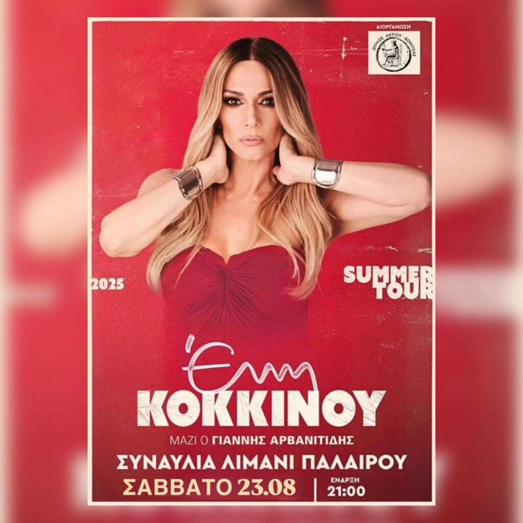 Η Έλλη Κοκκίνου έρχεται το Σάββατο 23 Αυγούστου, στις 21:00, στο Λιμάνι της Παλαίρου, για μια μεγάλη συναυλία με ελεύθερη είσοδο.